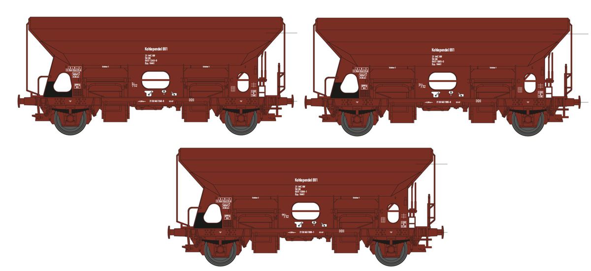 Unser Set stellt einen Ausschnitt eines solchen Pendelzuges dar. Die Wagen verfügen über unterschiedliche Betriebsnummern und sind mit einer realistischen Kohleladung ausgestattet.