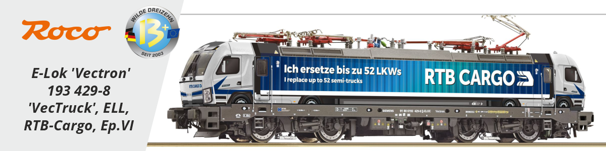 Mit der neuen Roco Elektrolokomotive BR 193 „VecTruck“ der RTB Cargo präsentiert unsere Händlergemeinschaft w13plus ein außergewöhnliches Sondermodell, das Technik, Design und Botschaft perfekt vereint.