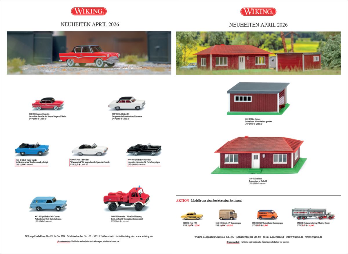 WIKING Neuheiten April 2026 – Klassiker, Cabrio-Trio, Messemodelle und neue Aktionen