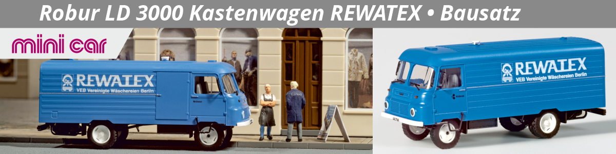 mini-car 66049 - Robur LD 3000 Kastenwagen, blau 'REWATEX', Bausatz