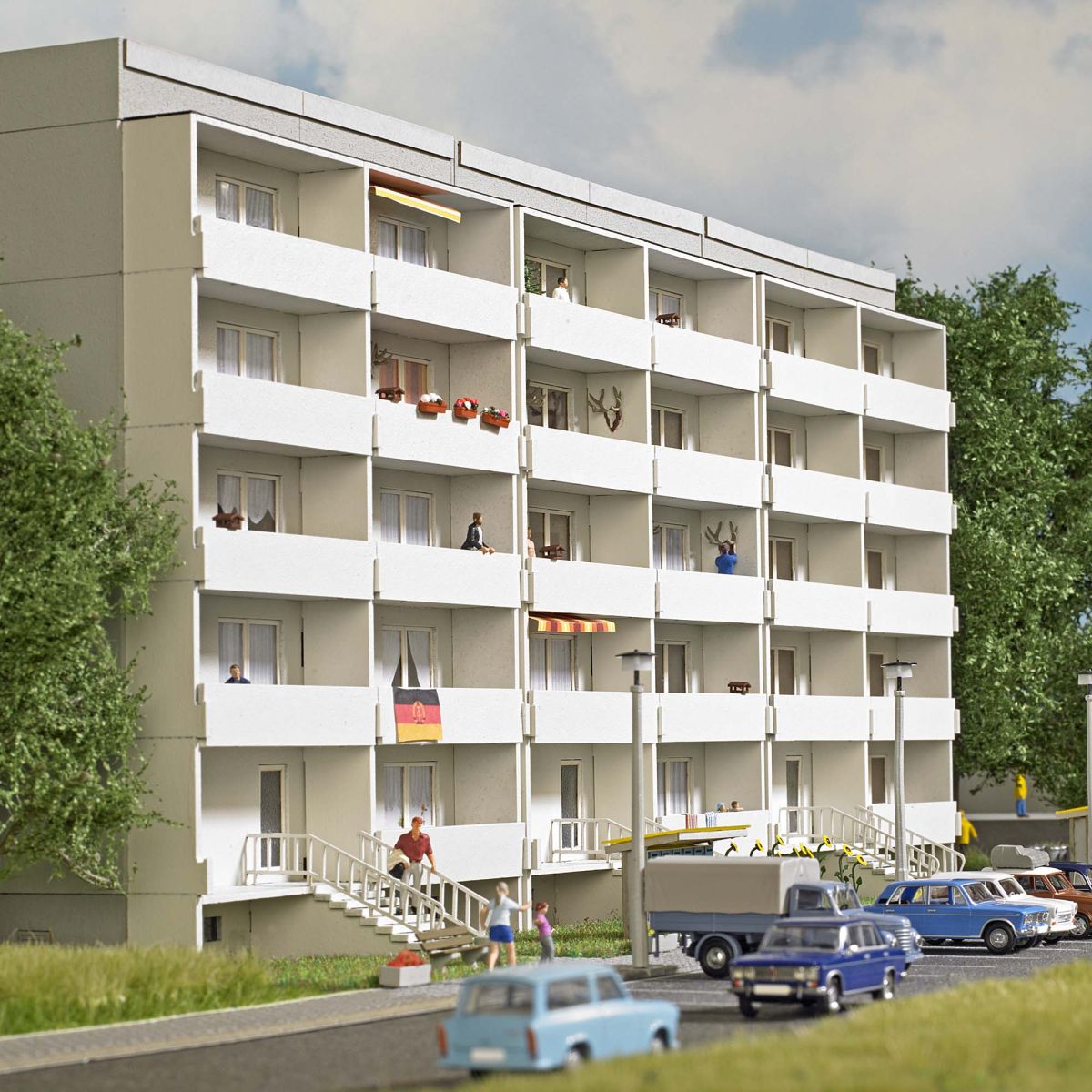 Die im Volksmund so genannte »Platte« steht für die Bauweise von Wohnhäusern aus standardisierten Wohnungsbauplatten. Diese wurden in Wohnungsbaukombinaten der DDR aus Beton hergestellt. Die Wohnungsbauserie aus dem Jahr 1970 (WBS 70) erlaubte die rationale und variable Erstellung von Wohnraum. Viele der so entstandenen Gebäudeensembles werden auch heute noch genutzt, manche stehen sogar unter Denkmalschutz. Die Plattenbauserie von Busch besteht aus dem Gebäude mit der gängigen Geschosshöhe, das durch eine separate Etage individuell aufgestockt werden kann.