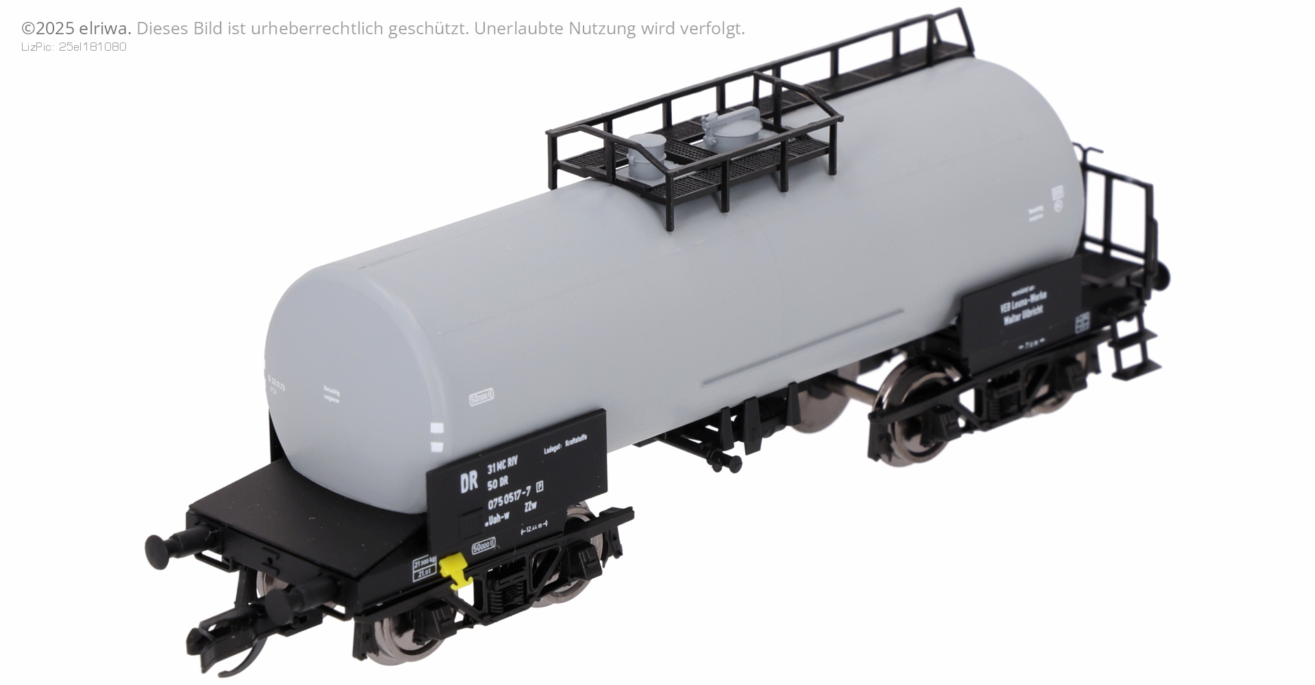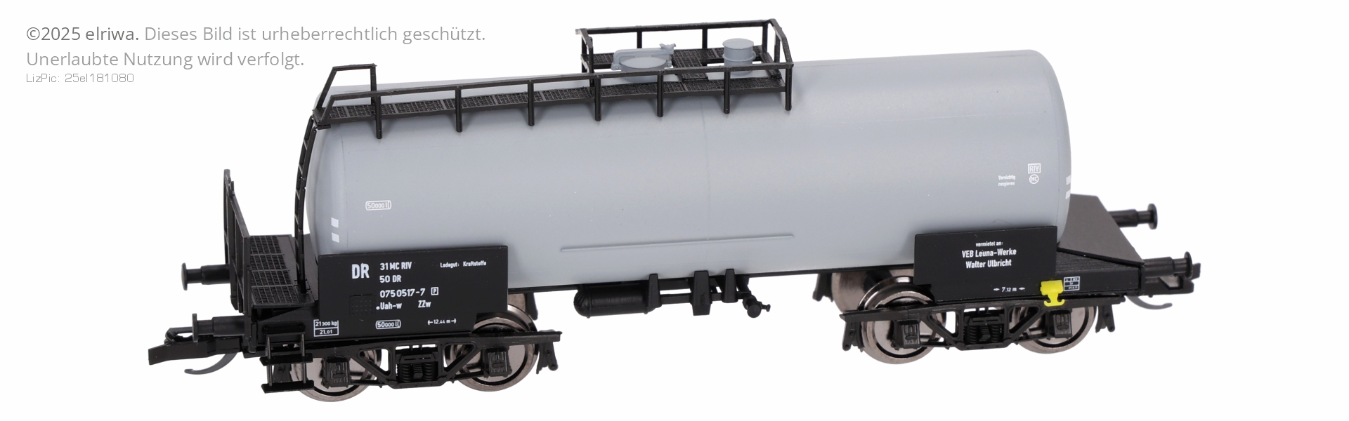 Beide Wagen (25078 und 25079) repräsentieren auf unterschiedliche Weise Vorbilder der Epoche IVa. Diese Kesselwagen der Bauart Uah-w wurden von der Deutschen Reichsbahn an den VEB Leunawerke Walter Ulbricht vermietet und ergänzen unser Kesselwagenprojekt mit Saxonia ideal.