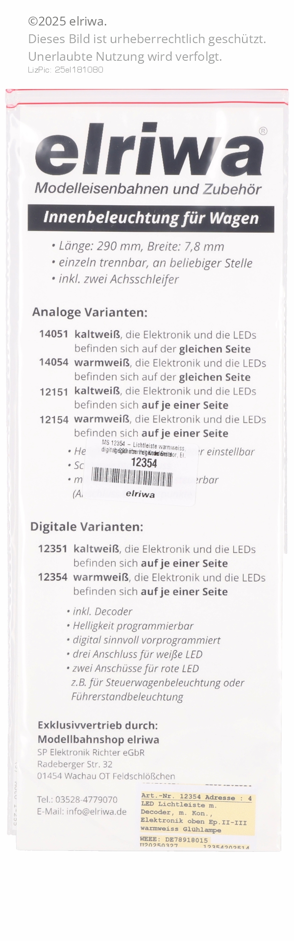 12354 - Lichtleiste warmweiss, digital, 290 mm mit Kondensator, Elektronik auf der gegenüberliegende Seite