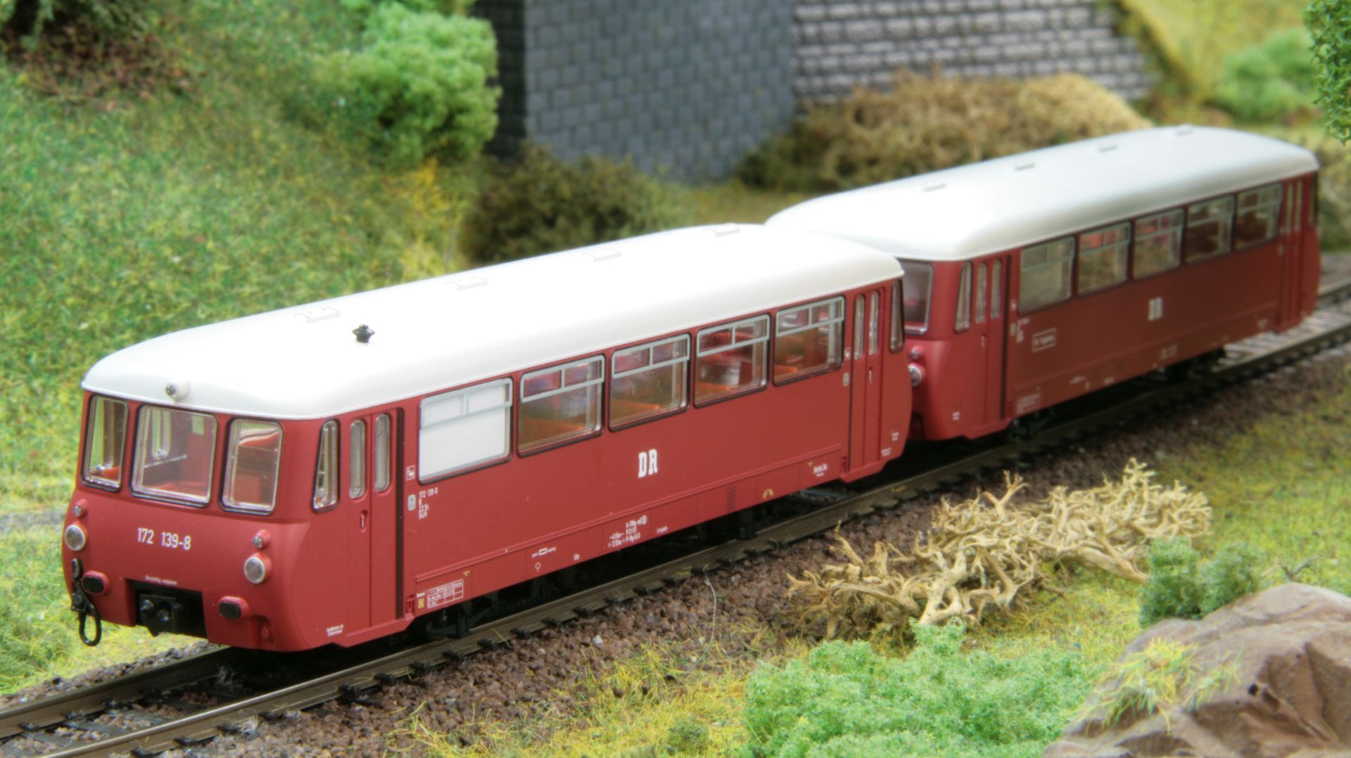 Vorbild: Der LVT 172 gehörte bei der Deutschen Reichsbahn zu den wichtigsten Fahrzeugen auf Nebenbahnen. Nach den ersten beiden Serien entstand ab 1969 im VEB Waggonbau Görlitz das dritte Baulos, das sich durch technische Verbesserungen wie eine verstärkte Rahmenkonstruktion und eine optimierte Mehrfachsteuerung auszeichnete. In der Epoche IV trat der Triebwagen in einem schlichten Erscheinungsbild ohne die zuvor üblichen Zierstreifen auf. Diese Fahrzeuge prägten das Bild vieler Nebenbahnen in den 1970er- und 1980er-Jahren in der DDR.