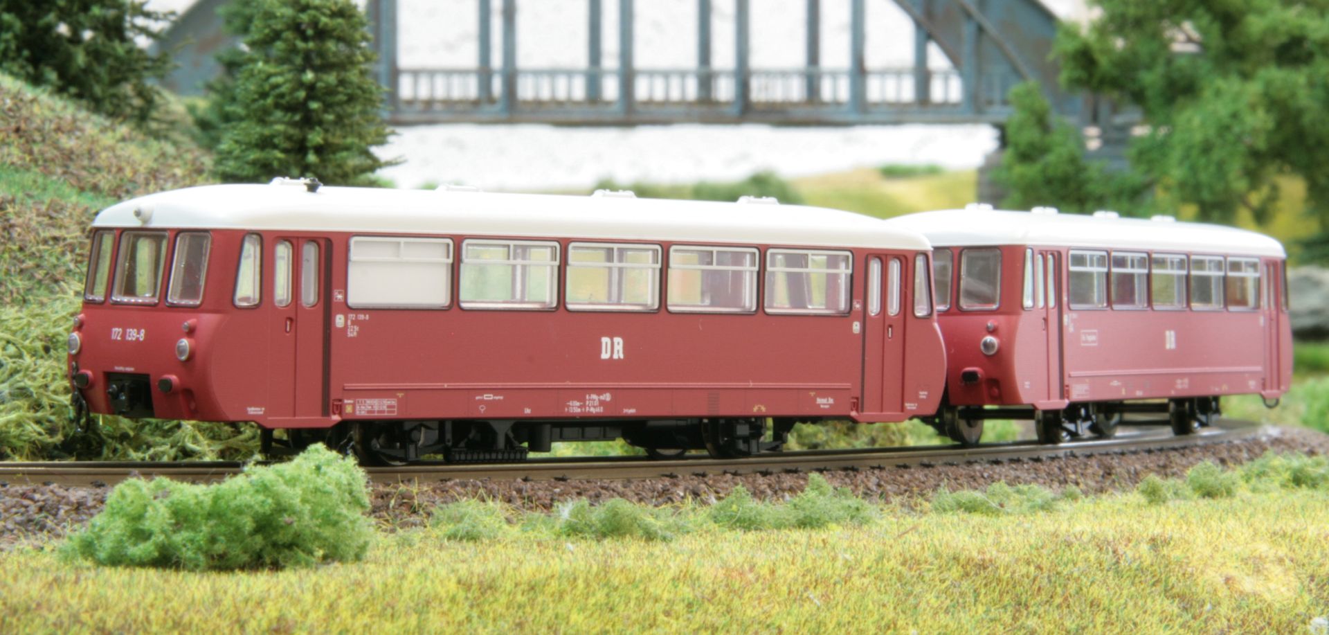 - Triebwagen LVT 172 und Steuerwagen LVS 172, DR, Ep.IV, ohne Zierstreifen, analog
