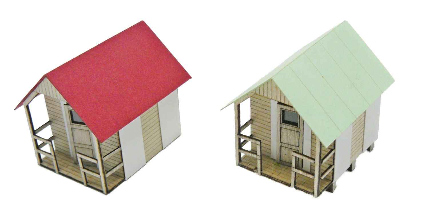 Lager- bzw. Gartenhütten, 2 Stück, kolorierter Bausatz, Lasercut