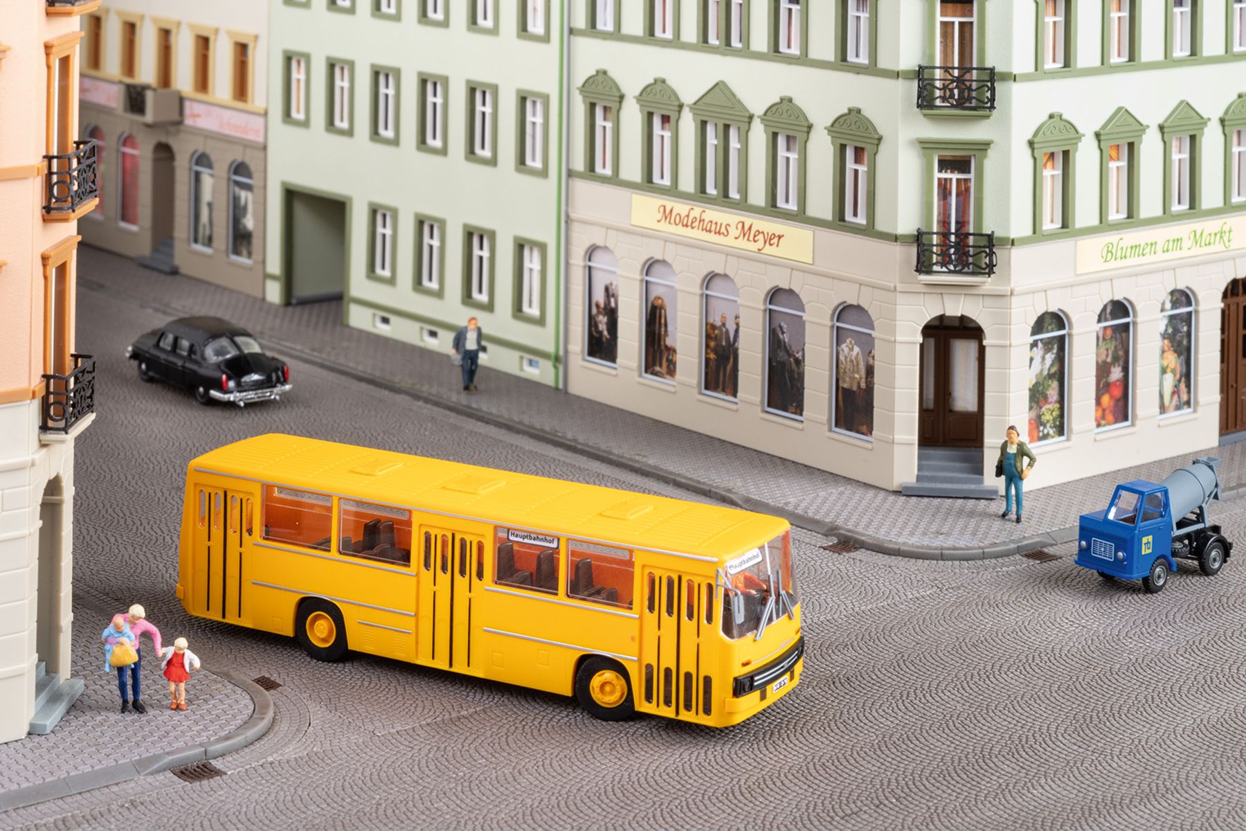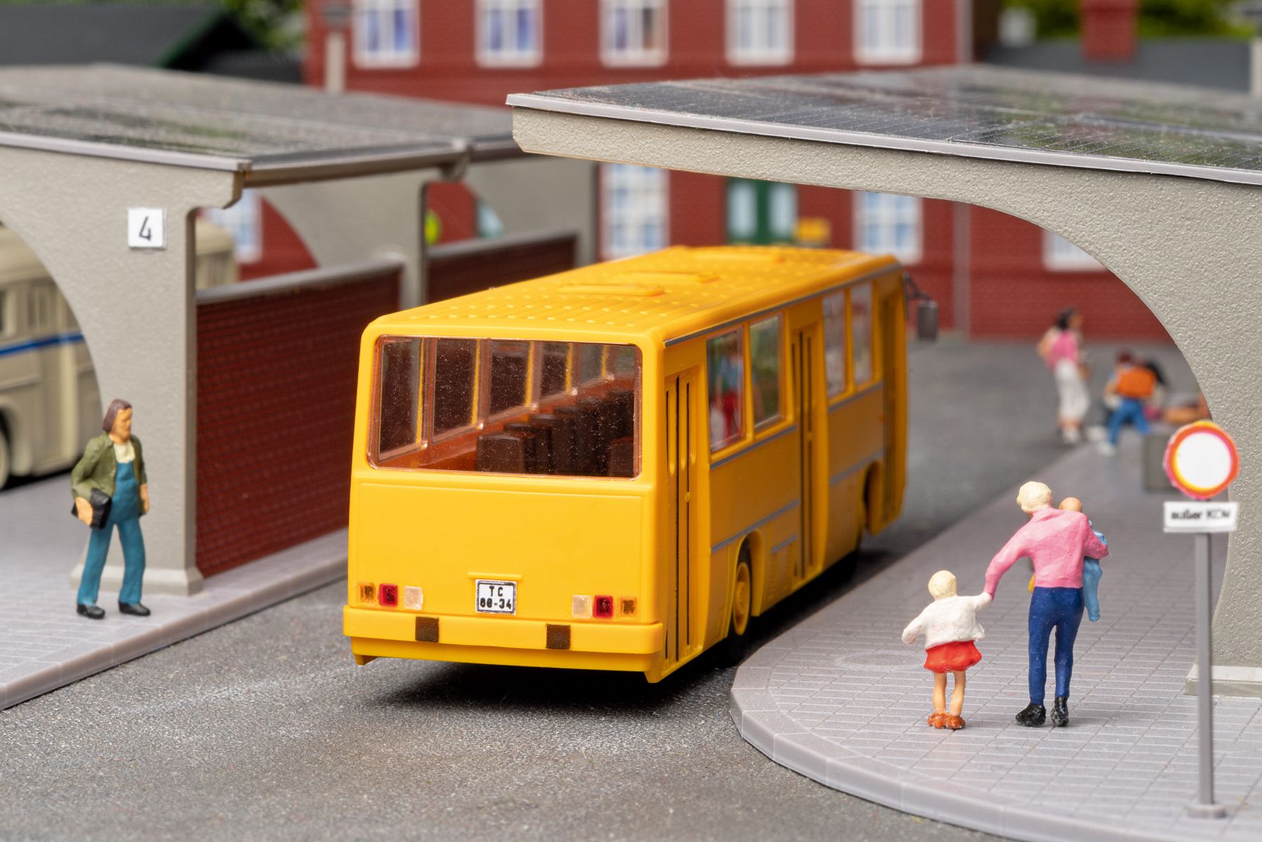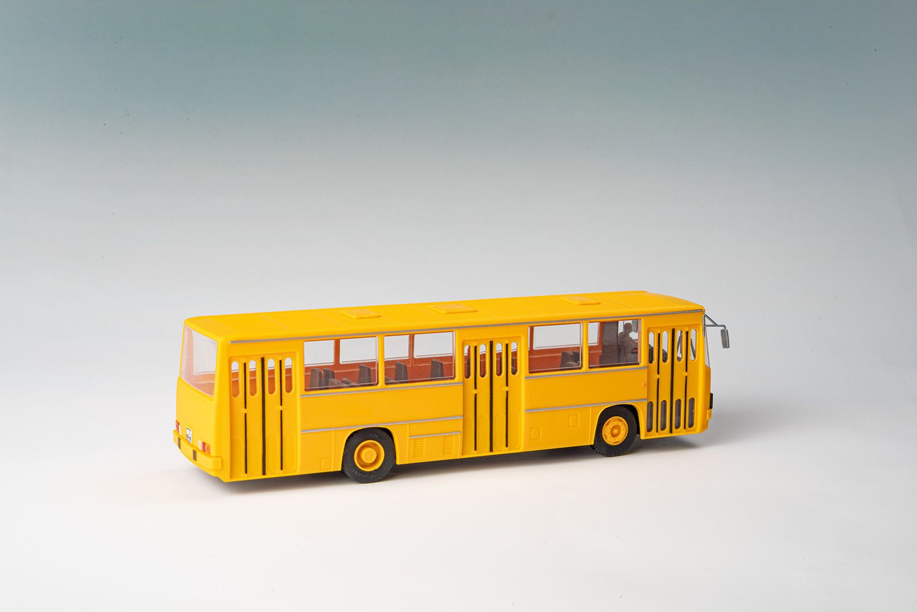 Bausatz. Fein detaillierte, bedruckte Modellnachbildung des Stadtomnibus „260“ des Herstellers Ikarus. Bündige einzusetzende Scheiben sowie einzeln zu montierende transparente Leuchten, vorbildgerechte Bereifung und Rollfähigkeit zeichnen das Fahrzeug aus. Eingelenkt darstellbare Vorderräder sowie eine zum Selbstbemalen beiliegende Fahrerfigur für die Gestaltung realistischer Szenen.