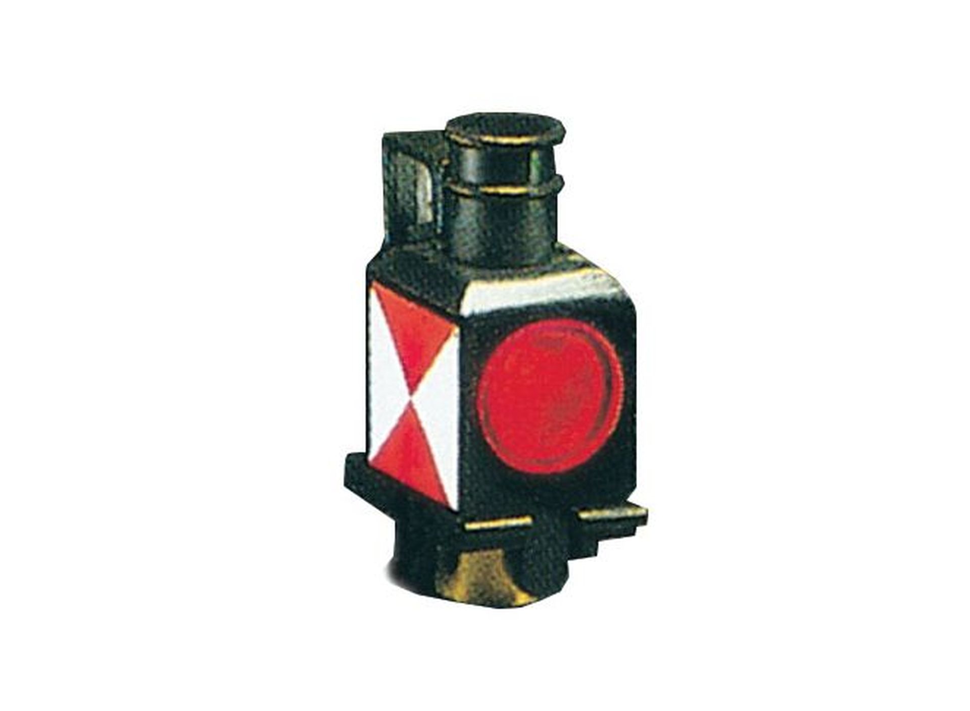 Montieren Sie diese vorbildgetreue Laterne hinten an Ihren Zug. Mit Beleuchtung für Nachtbetrieb und Warnmarkierung für den Tagbetrieb. Glühlampe und Kabel liegen bei.