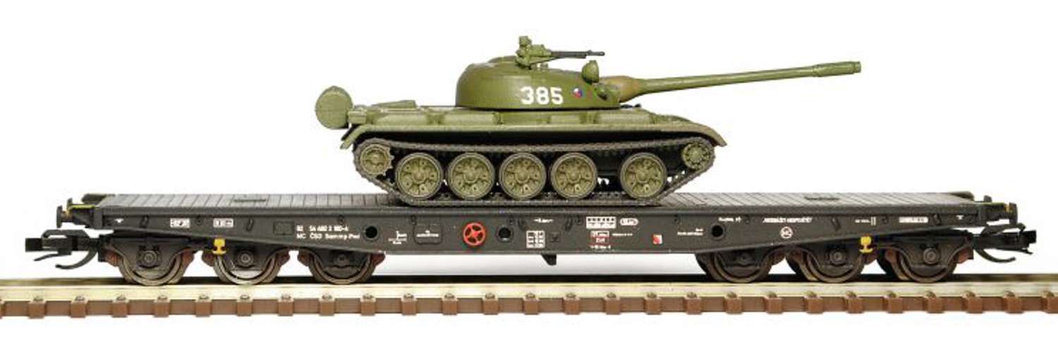 Kompletter Bausatz des Flachwagens. Er enthät Kunststoffteile für Bau des Modells einschließlich Kurzkupplungskinematik, Kupplungen, Metallradsätze in höchster Qualität, Ätzteile, Gewicht und Abziehbilder. Betreiber: CSD, Epoche: IV.