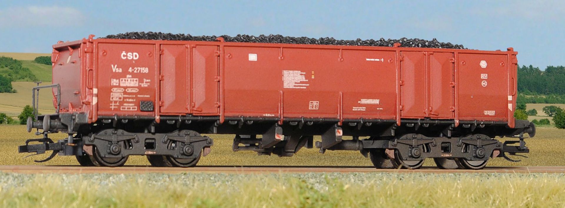 Kompletter Bausatz des offenen Güterwagens. Er enthät Kunststoffteile für Bau des Modells einschließlich Kurzkupplungskinematik, Kupplungen, Metallradsätze in höchster Qualität und Ladungsimitation, Ätzteile, Gewicht und Abziehbilder. Betreiber: CSD, Epoche: III. und IV.