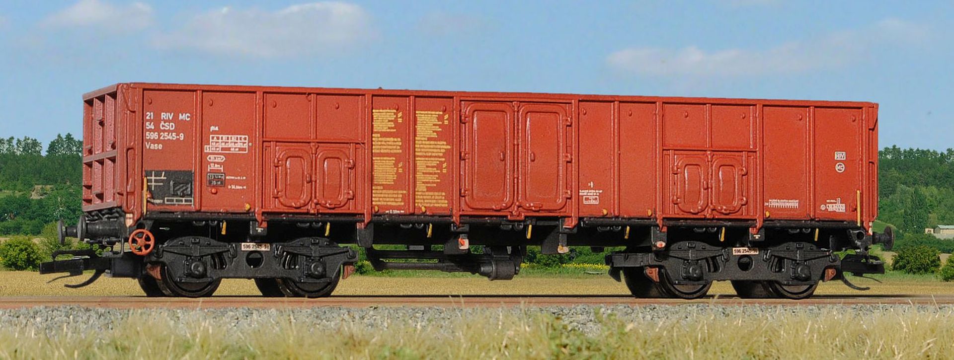 Kompletter Bausatz des offenen Güterwagens. Er enthät Kunststoffteile für Bau des Modells einschließlich Kurzkupplungskinematik, Kupplungen, Metallradsätze in höchster Qualität und Ladungsimitation, Ätzteile, Gewicht und Abziehbilder. Betreiber: CSD, Epoche: III. und IV.