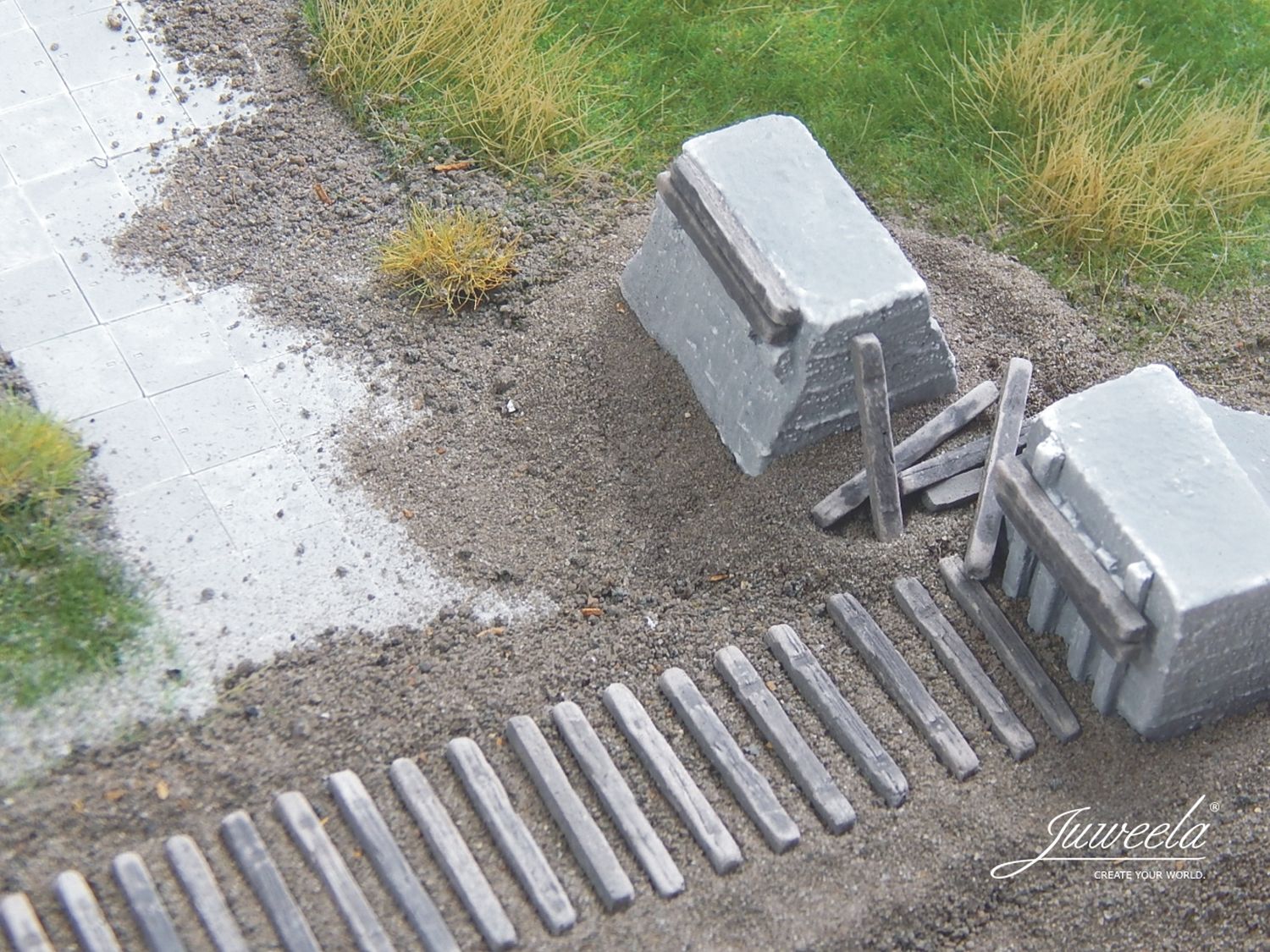 Beliebig aufeinandergestellt ergeben sich völlig individuelle Möglichkeiten im Diorama und in der Modellbau Gestaltung.