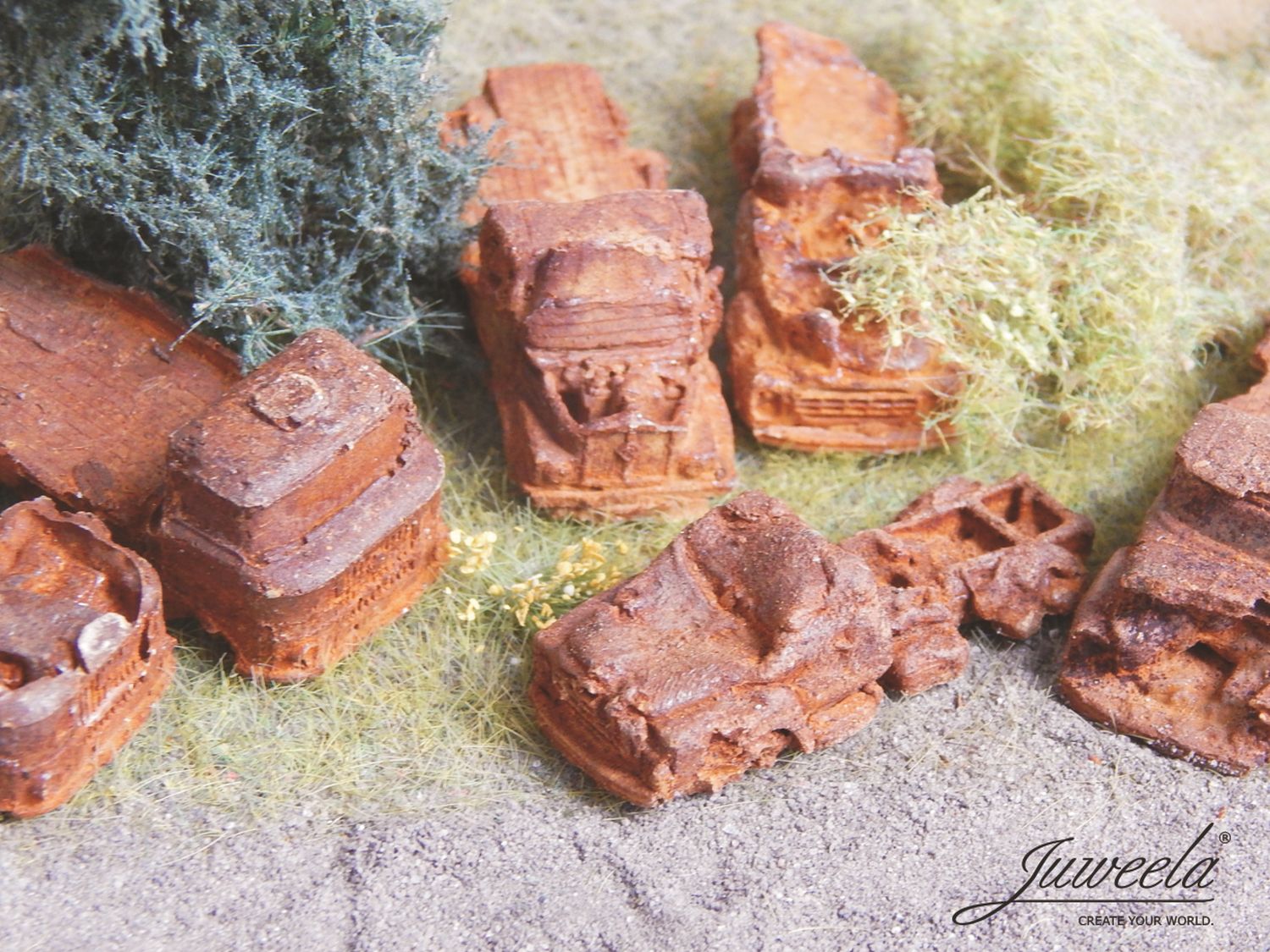 Juweela 21200 - Schrottautos DDR rostig Echtrost, 6 Stück, 1:120, TT