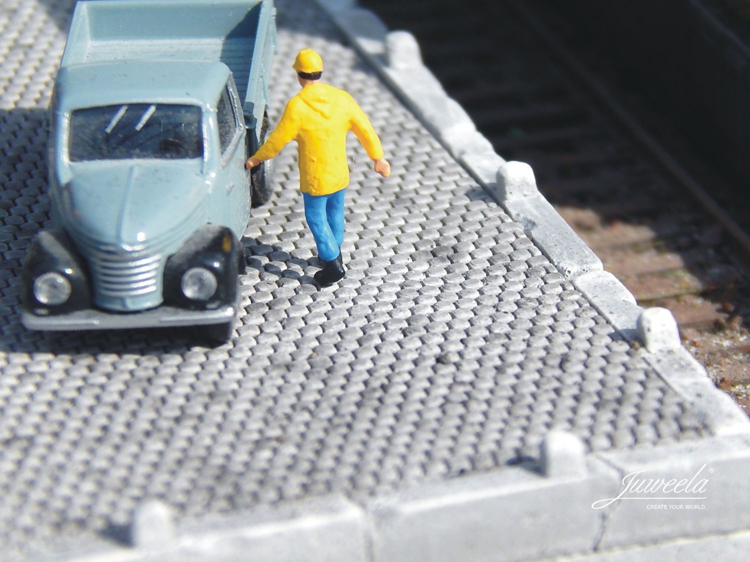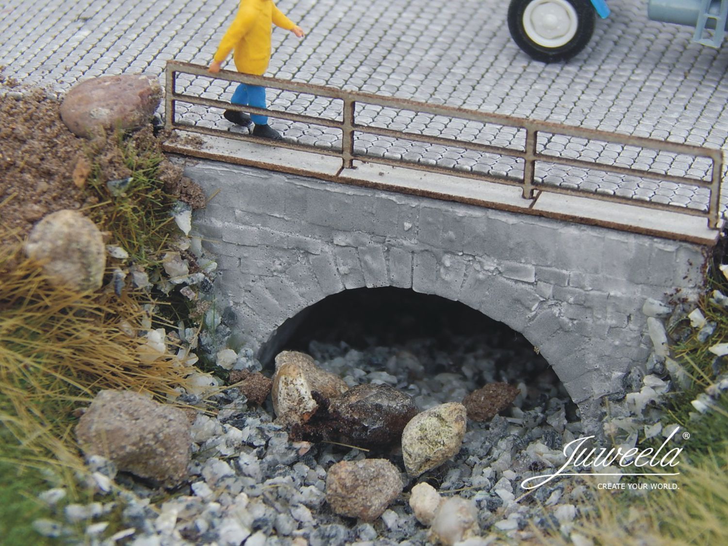 Die Ziegelstein-Struktur fügt sich in jedem Diorama gut ein. Da die Unterseite ebenfalls mit Ziegeln gemauert ist, sind viele schöne Details in der Modellbau Landschaft darstellbar.