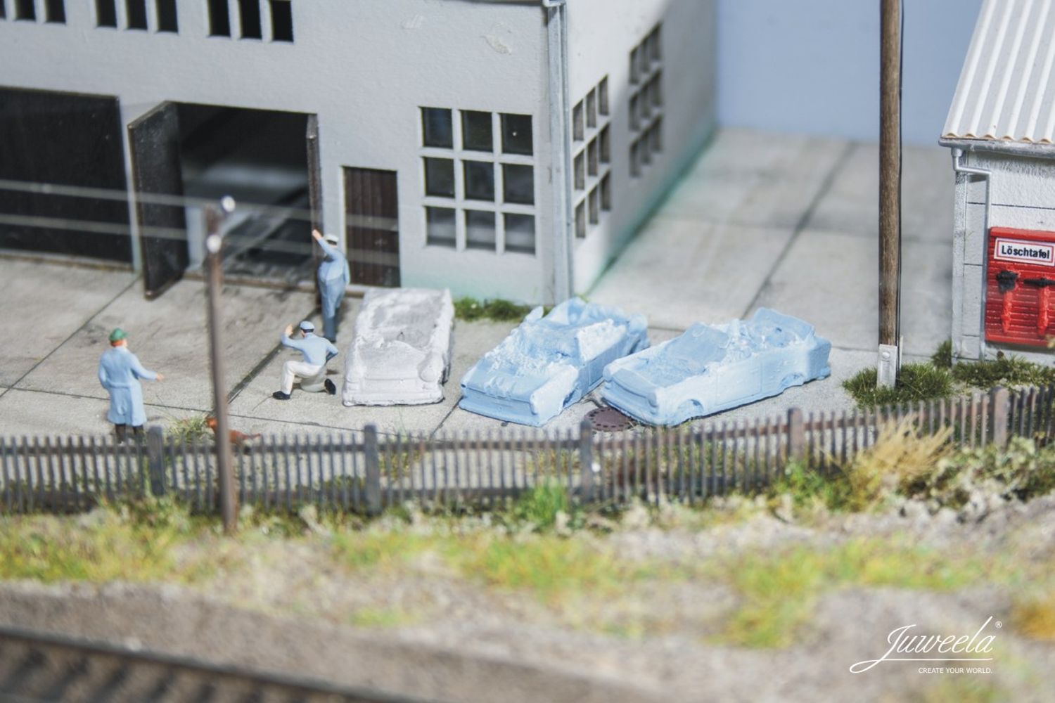 Auch ein Autoleben hat mal ein Ende. Diese hier stehen schon etwas länger auf dem Schrottplatz Ihres Dioramas und warten auf den Transport mit Eisenbahn oder LKW.