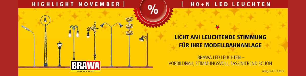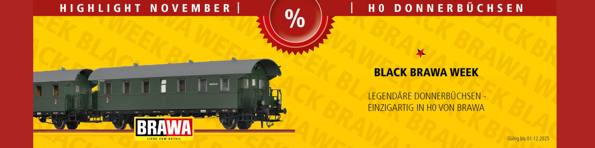 Ab sofort können Sie H0-Donnerbüchsen und verschiedene Leuchten (H0-N) vorbestellen. Diese Aktionsware erwarten wir Anfang KW 46/2025! Auch beim Hersteller gilt "Nur solange der Vorrat reicht!"